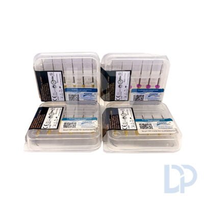 Kit Assorti Limes Fanta V-Taper (Type Protaper Gold). Plaquette de 6 limes (SX, S1, S2, F1, F2, F3). Alliage Gold thermique pour une flexibilité extrême et résistance à la fatigue cyclique. Séquence complète de mise en forme.