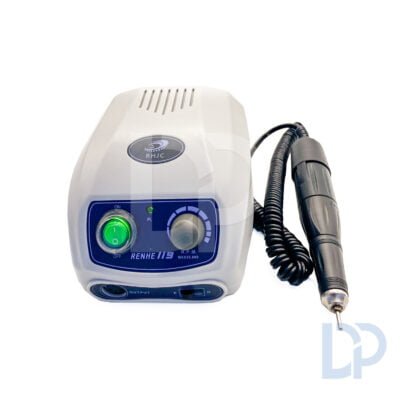Micromoteur de table Renhe 119. Moteur à charbons robuste pour prothèse. Vitesse 0-35.000 rpm. Couple élevé. Pièce à main ergonomique. Pédale variateur incluse.