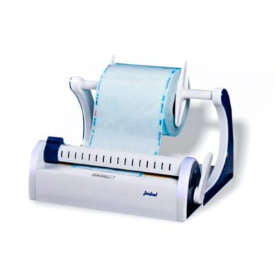 Thermosoudeuse dentaire Best. Pour la fermeture hermétique des gaines de stérilisation. Température réglable, coupe intégrée, porte-rouleaux. Soudure large (10mm) conforme aux normes.