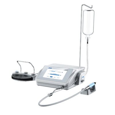 Moteur d'implantologie avec lumière LED. Unité chirurgicale puissante et précise pour la pose d'implants. Grand écran tactile, pompe péristaltique silencieuse, couple élevé (jusqu'à 80 N.cm). Pédale multifonction. Fiabilité et précision.