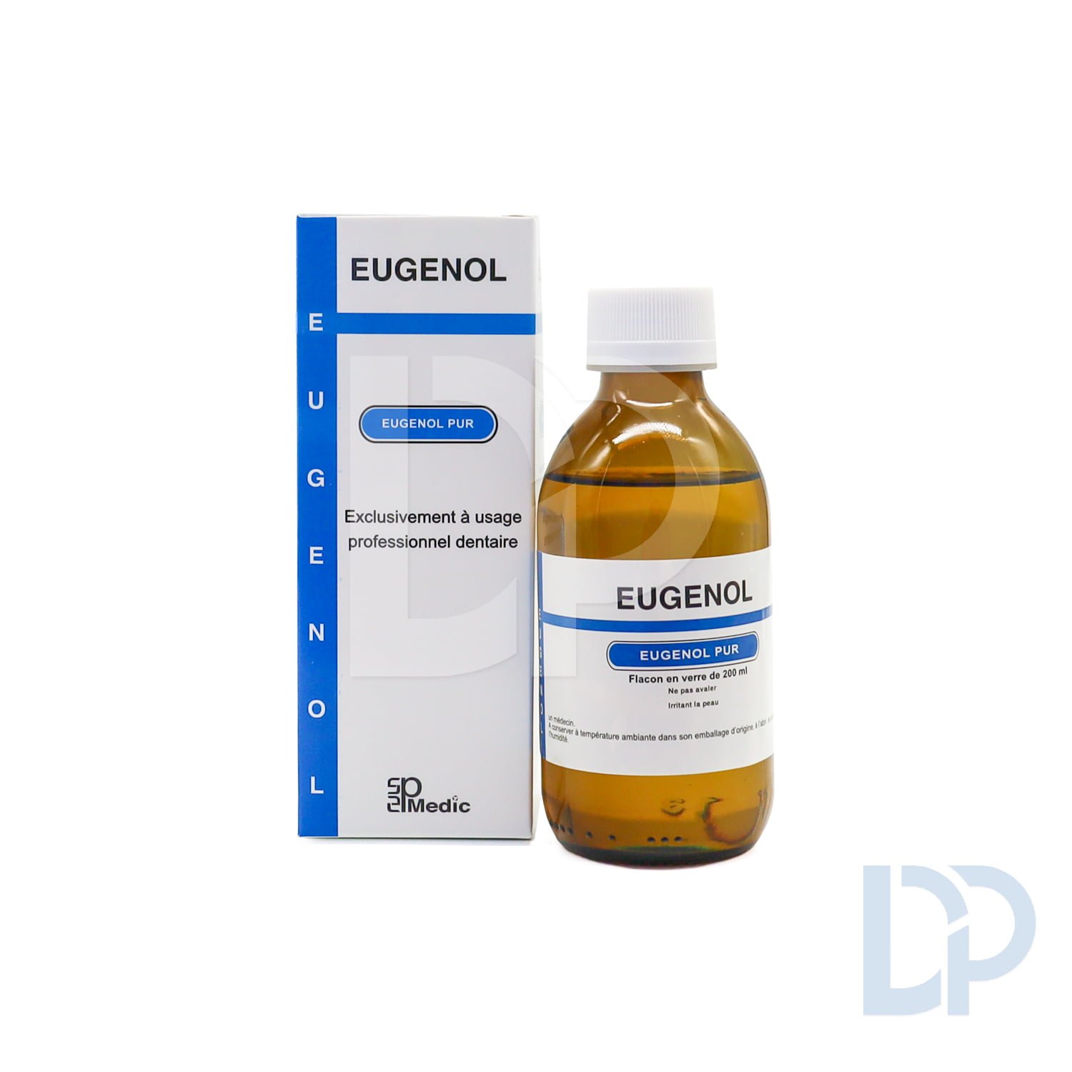 (-18%)Eugénol liquide pur. Essence de girofle de qualité pharmaceutique. Analgésique et antiseptique. À mélanger avec l’oxyde de zinc pour ciments provisoires et pansements sédatifs.