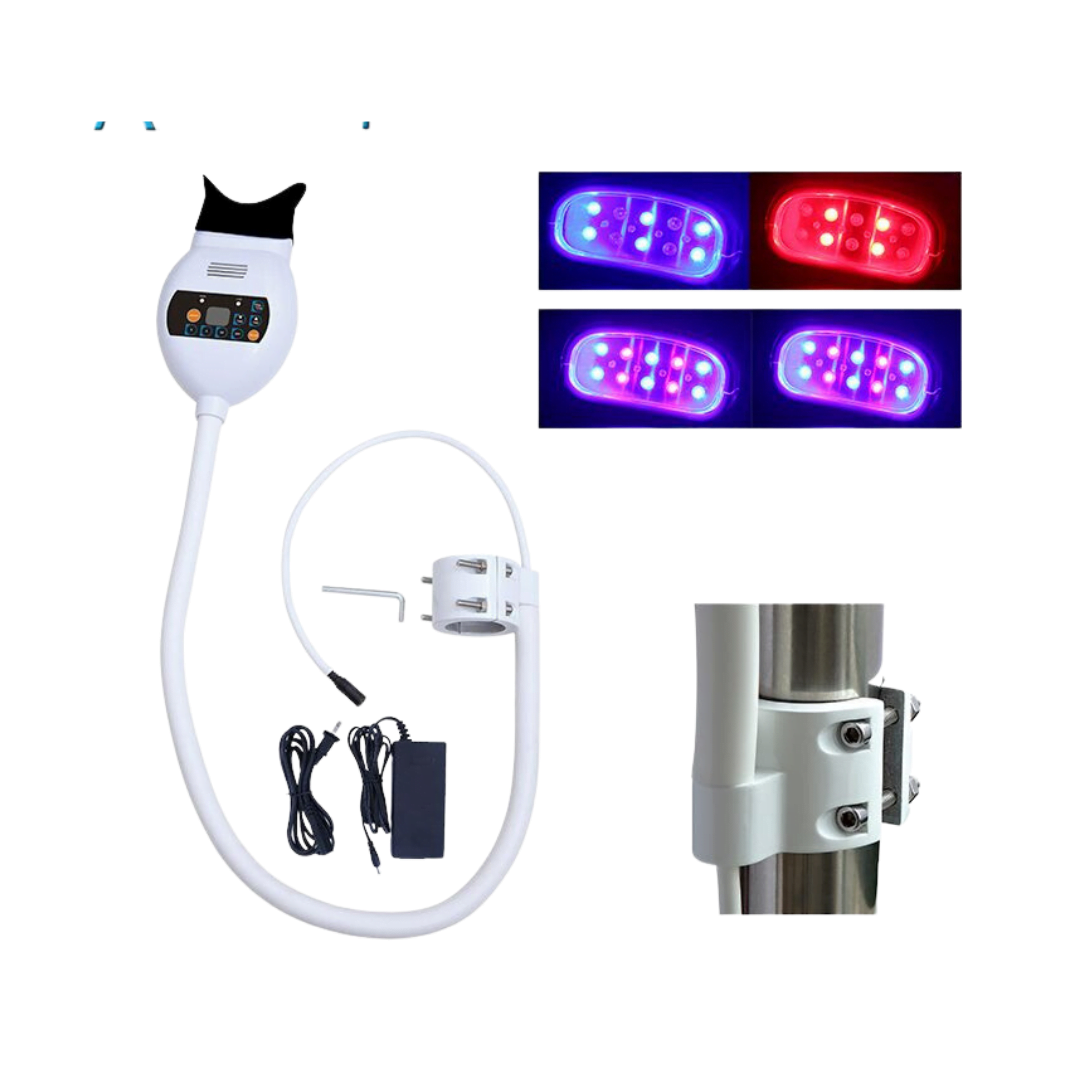 Cette version de la lampe de blanchiment est conçue pour se fixer directement sur le mât ou la colonne de votre fauteuil dentaire. C’est la solution idéale pour optimiser l’espace au sol dans le cabinet.
