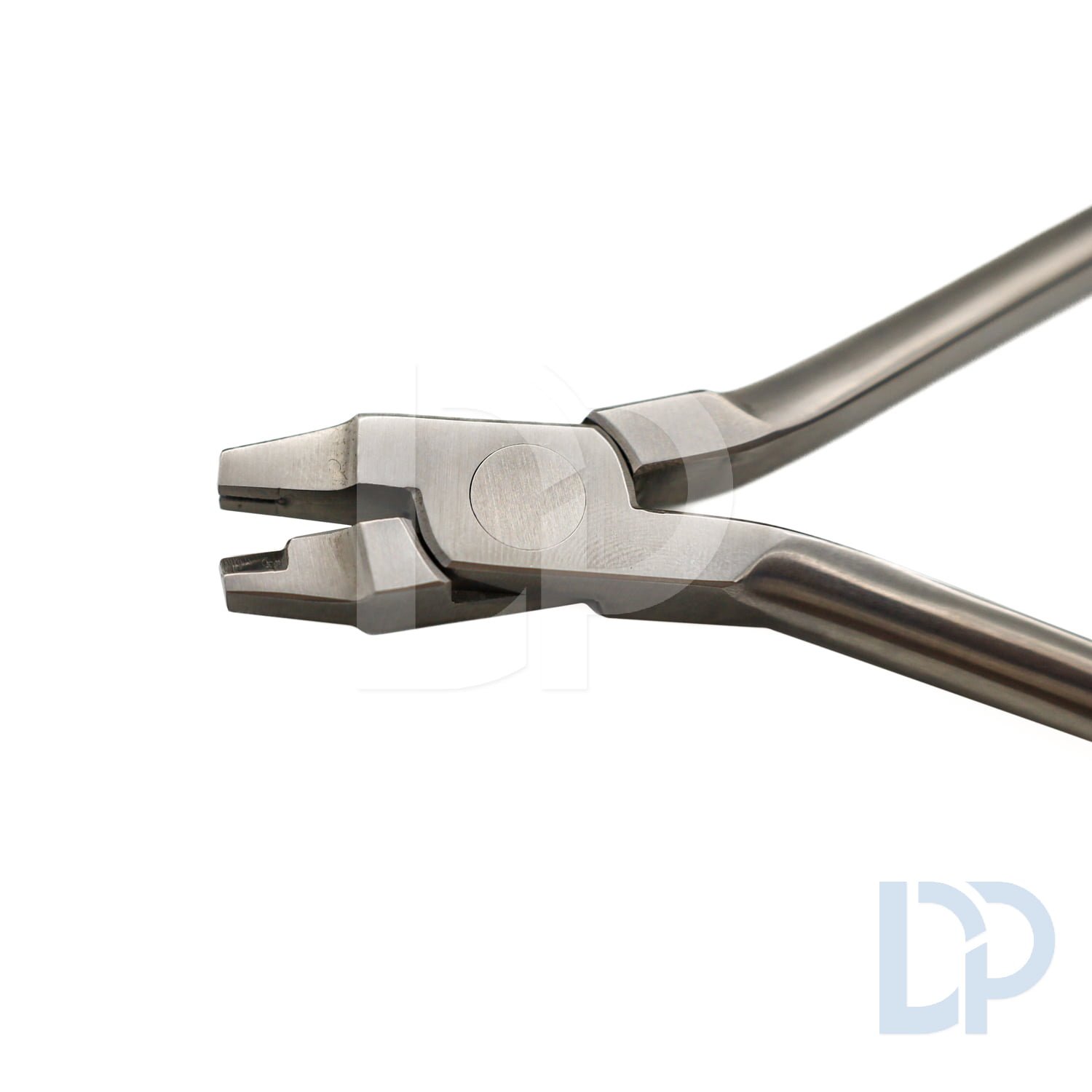 La forme droite et ergonomique de la pince permet un positionnement stable et un contrôle optimal du geste, facilitant les manipulations même dans des zones difficiles d’accès. Le praticien bénéficie ainsi d’une grande précision lors de la fermeture des crochets ou stops, tout en réduisant la fatigue lors des gestes répétitifs.
